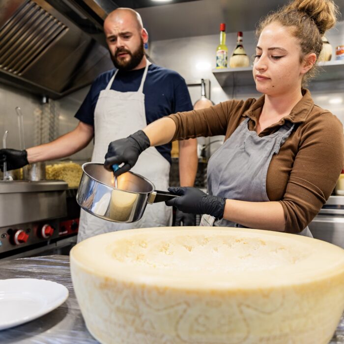 Nos pâtes fraîches dans la meule de parmesan !