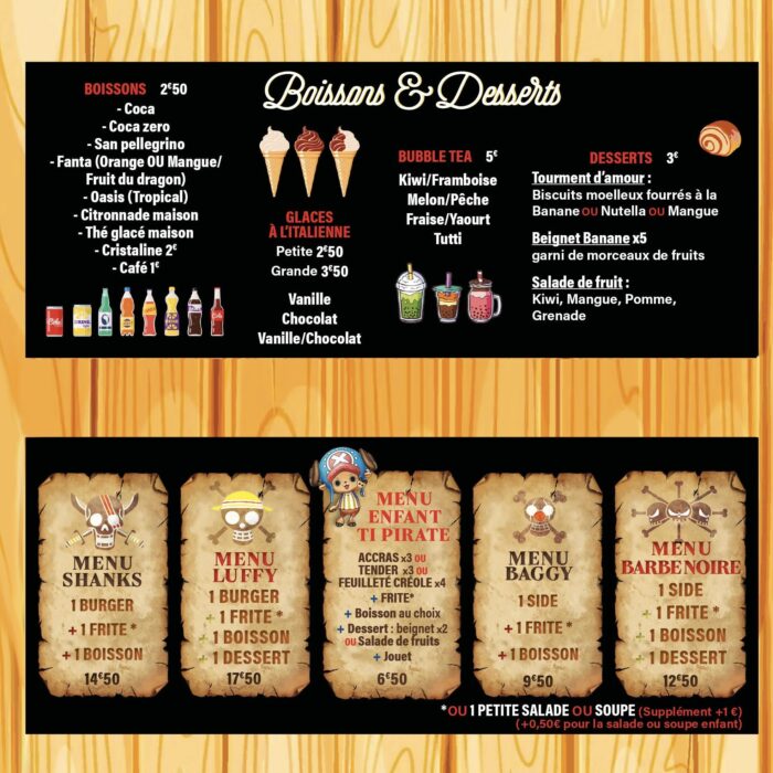 Après pas mal d’année dans la restauration nous avons voulu nous lancer à notre compte en imaginant une carte originale autant par des saveurs en proposant du food créole peu connu encore et en alliant un design unique qui allie voyages et mangas